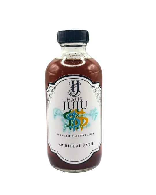 Haus JuJu's, Prosperity Flame, Spiritual Bath is intentionally made with elements associated with Abundant energy, is intentionally made with elements associated with Wealth and Prosperous energy including Peppermint, Cinnamon, Clove, Saffron, Lemongrass & more.